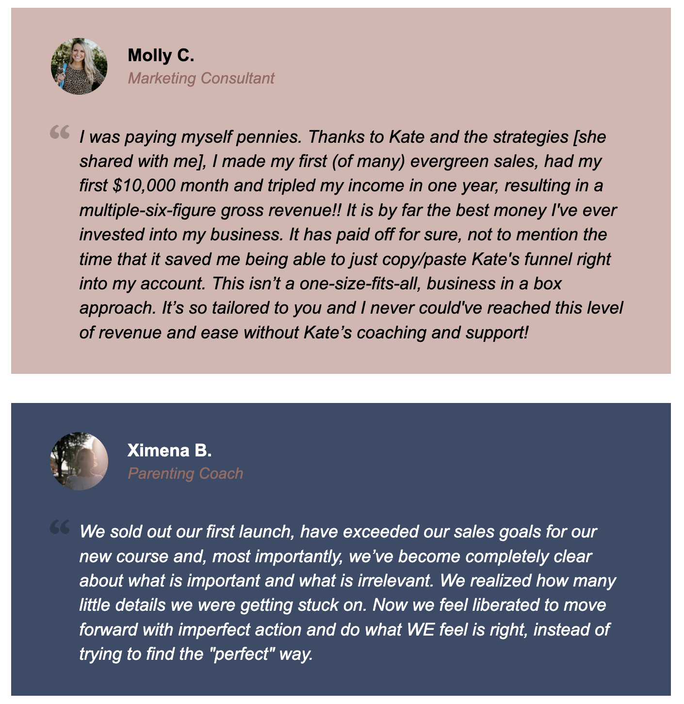 The details, raw insights, and real-time strategy moves are incredible. I now have more strategic thinking baked into my daily plan. The daily sales checklist is a game changer. This is extremely valuable—especially because you can see Kate’s real-time strategy on paper and then ask her about it in Voxer as it relates to your own business. Kate is generous in her coaching support, and the value is totally worth it.