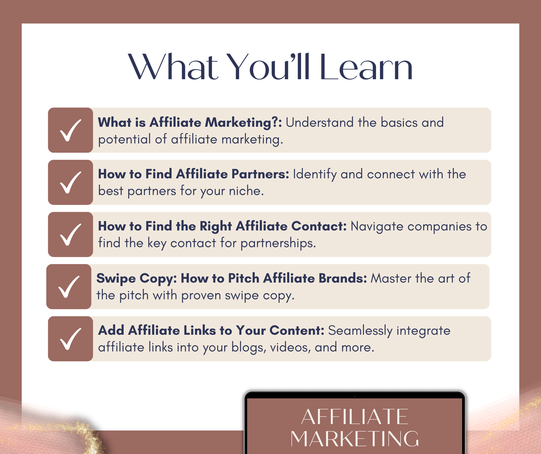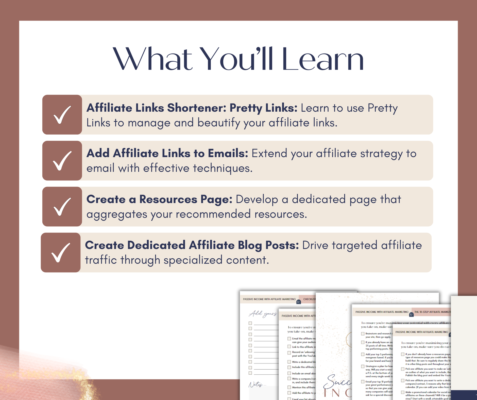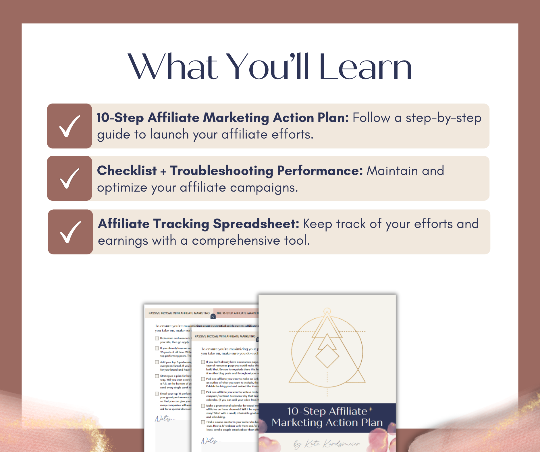 - Checklist + Troubleshooting Performance: Maintain and optimize your affiliate campaigns.