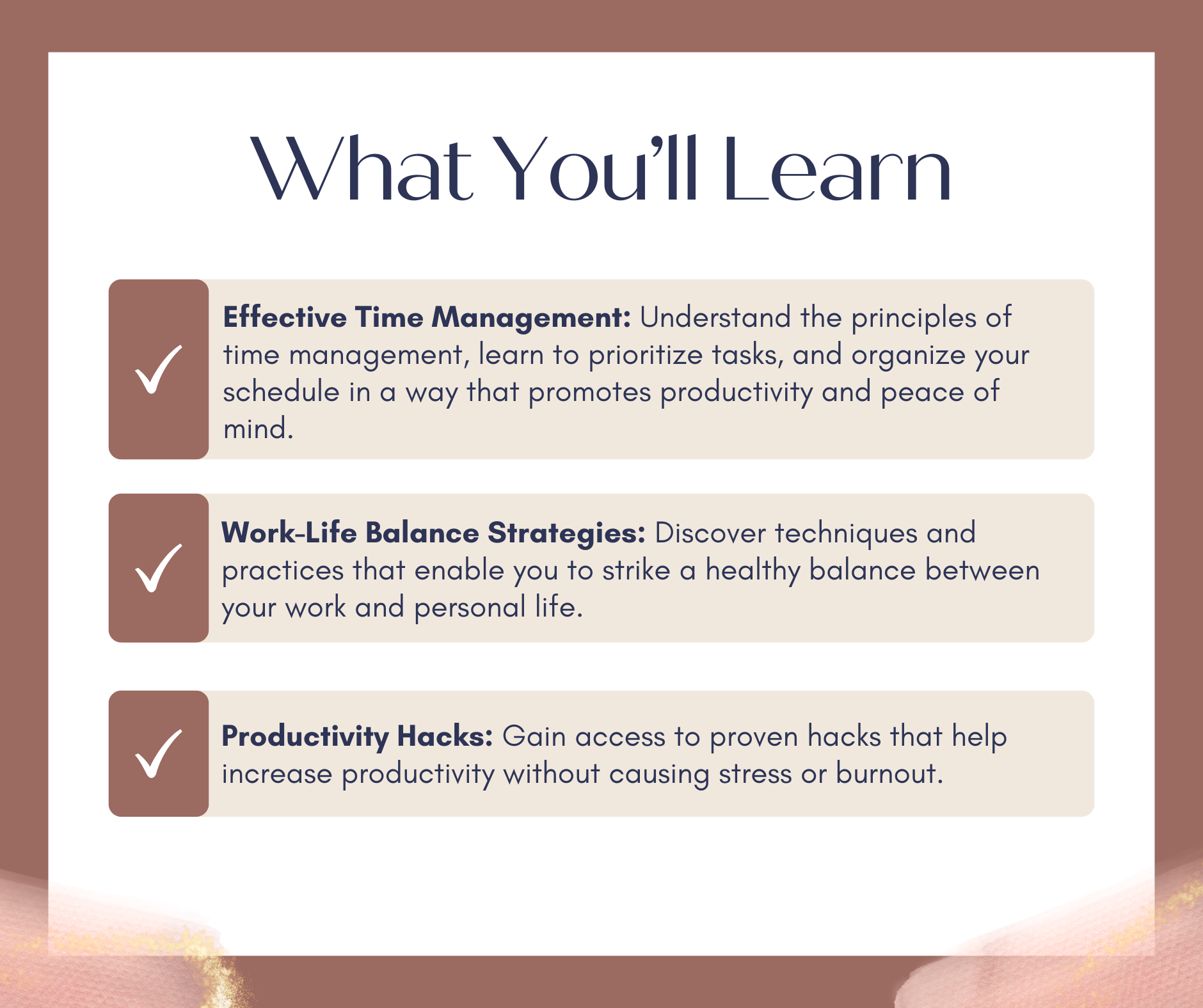 Productivity Hacks: Gain access to proven hacks that help increase productivity without causing stress or burnout.