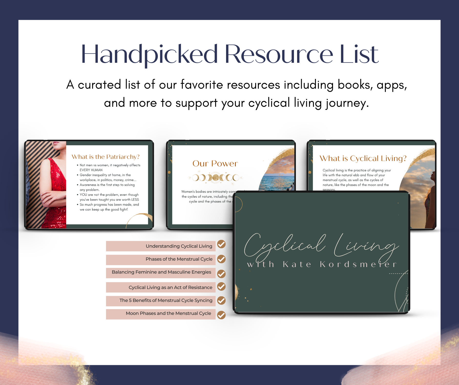 Handpicked Resource List: A curated list of our favorite resources including books, apps, and more to support your cyclical living journey.