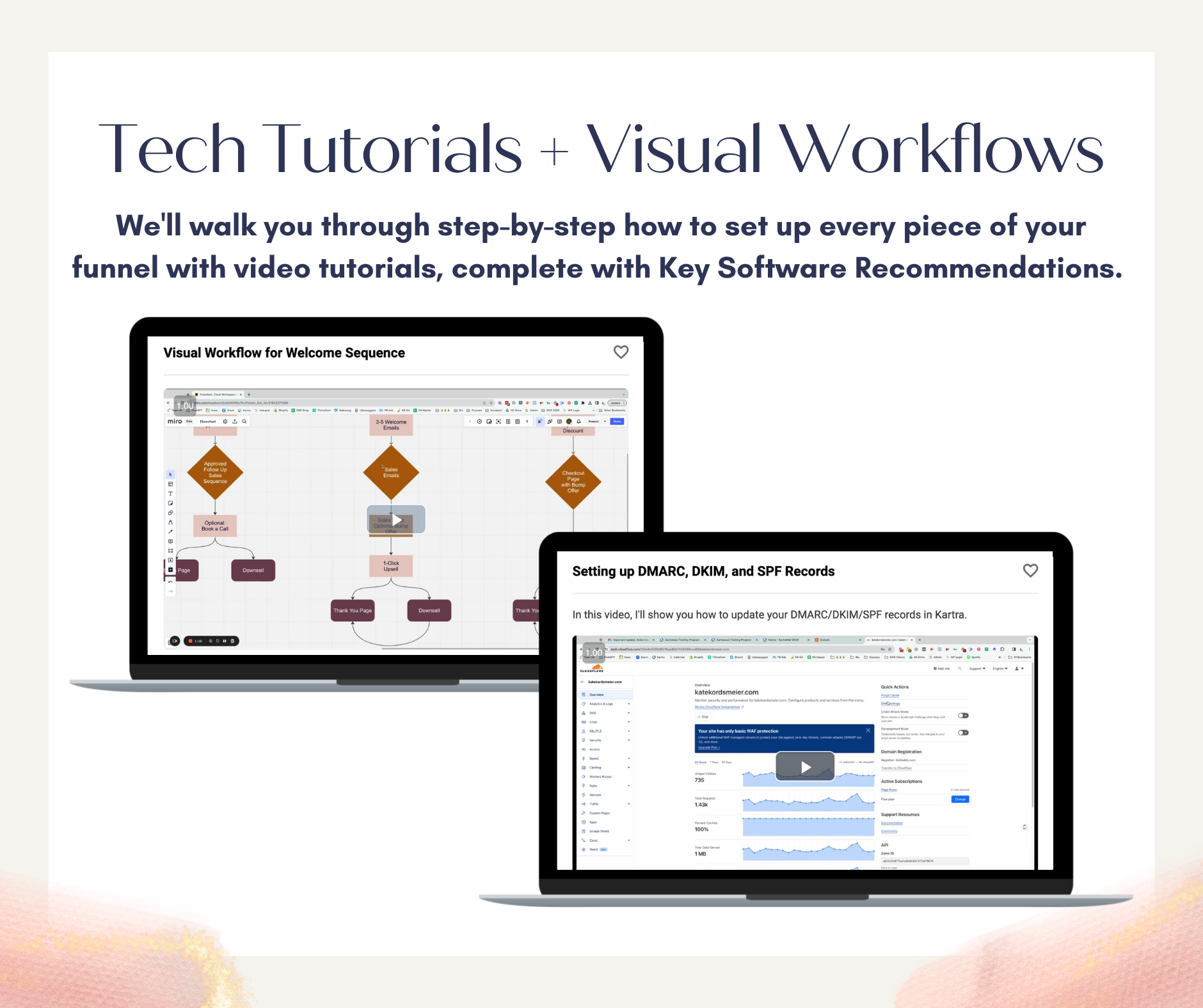 - Tech Tutorials: We'll walk you through step-by-step how to set up every piece of your funnel with video tutorials, complete with Key Software Recommendations.