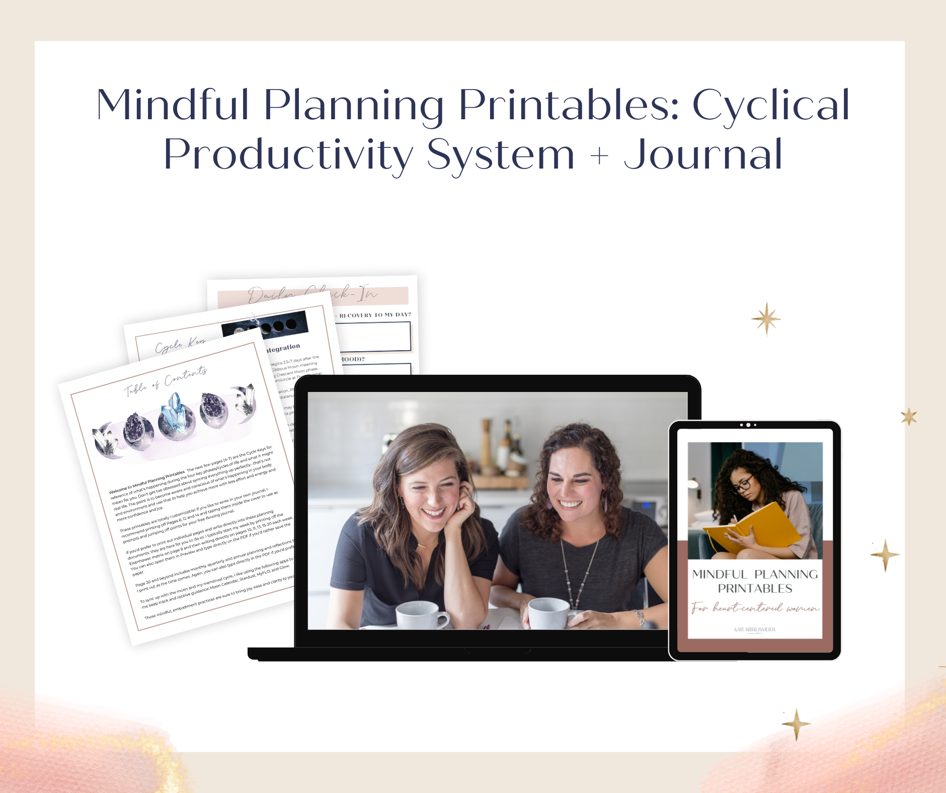 - Mindful Planning Printables: Cyclical Productivity System + Journal ($88 value): Busyness is a choice. So is overwhelm. You have to actually pay attention to your life and how you spend your time instead of just living in a constant state of reaction. This journal-meets-planner will help you do exactly that.