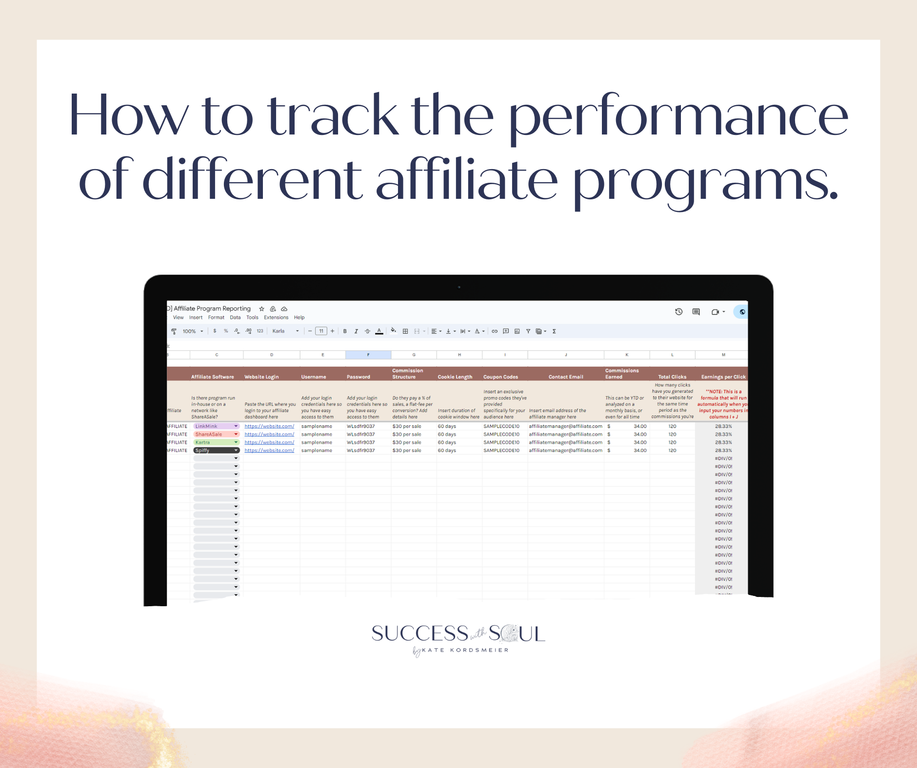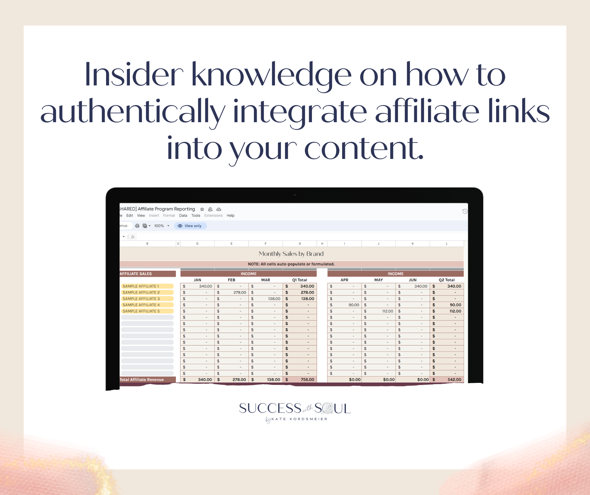 This spreadsheet is also included in the Success with Soul Incubator, alongside an entire module on affiliate marketing.