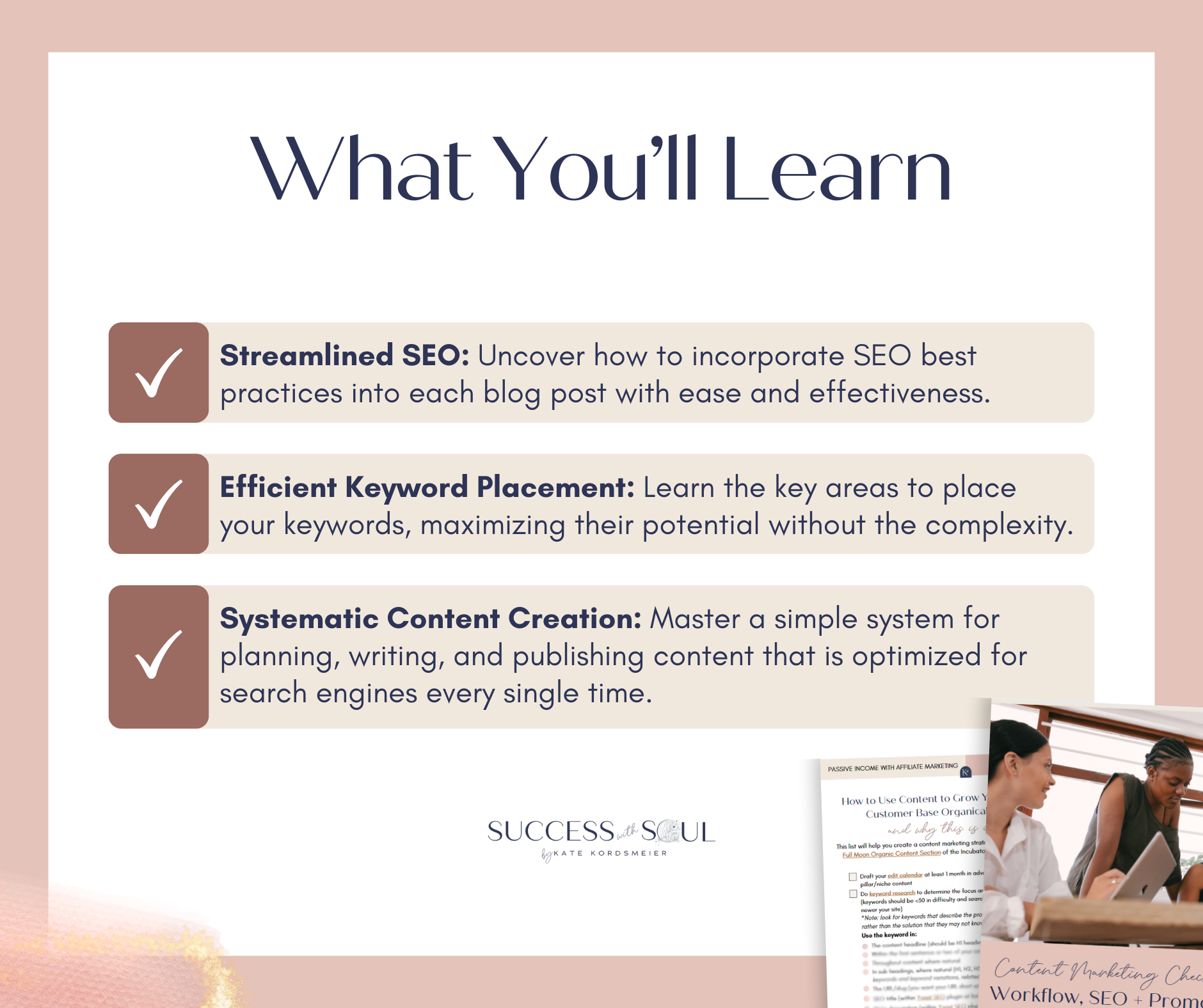 - Systematic Content Creation: Master a simple system for planning, writing, and publishing content that is optimized for search engines every single time.