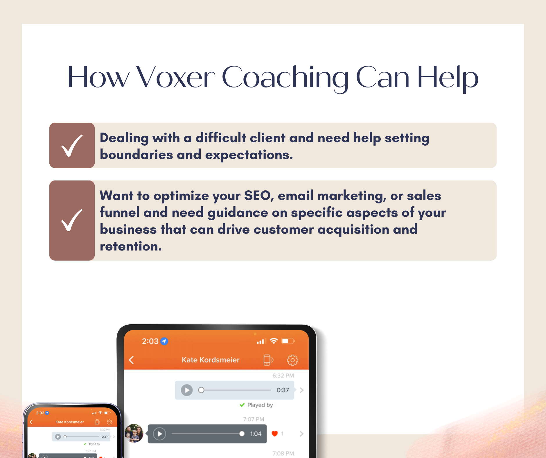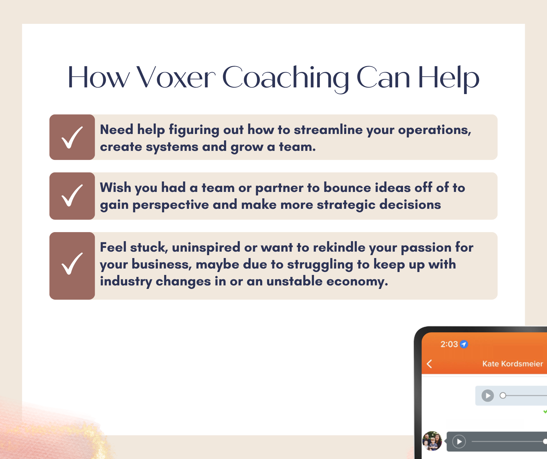How do I access the Voxer coaching? After making your payment and booking your day, we'll provide all necessary guidance on setting up and using Voxer.