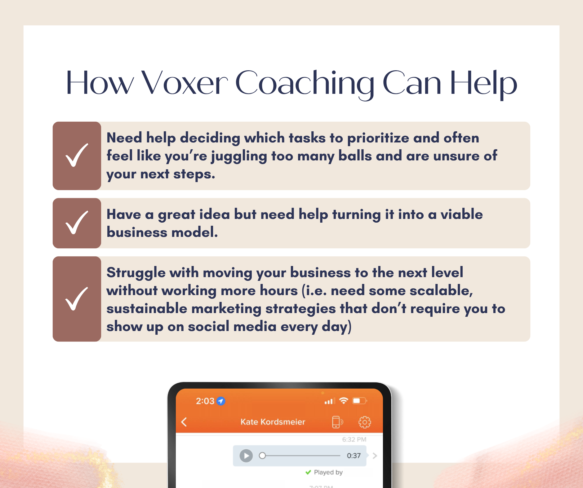 If you’ve ever wished for a business fairy godmother to bibbidi-bobbidi-boop 🪄 your worries away, this one’s for you. I'm rolling out the red carpet for our UNLIMITED Monthly Voxer' coaching service – it’s like your very own pocket-sized strategist!